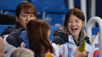 [OSEN=소치(러시아), 박준형 기자] 22일(한국시각) 러시아 소치의 아이스버그 스케이팅 팰리스에서 여자 쇼트트랙 대표팀 박승희 심석희 김아랑이 1000m 경기에 앞서 워밍업을 할때 응원 온 조해리 공상정이 환하게 웃고 있다. 2관