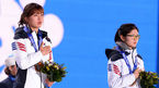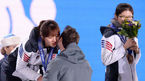 [OSEN=소치(러시아), 박준형 기자] 2014 소치동계올림픽 쇼트트랙 여자 1000m 시상식이 23일(이하 한국시간) 러시아 소치의 메달프라자에서 열렸다. 심석희가 금메달을 건네받고 볼키스 인사를 나누는 박승희를 바라보며 즐거워하고