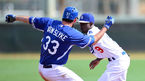 [OSEN=글렌데일(애리조나), 이대선 기자] 24일(한국시간) 미국 애리조나주 글렌데일 캐멀벡랜치에서 메이저리그 LA다저스 청백전이 진행됐다. 3회초 백팀 아드리안 곤살레스가 안타를 치고 환호하고 있다. 류현진은 청백전에서 청