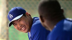 [OSEN=글렌데일(애리조나), 이대선 기자] 24일(한국시간) 미국 애리조나주 글렌데일 캐멀벡랜치에서 메이저리그 LA다저스 청백전이 진행됐다. 경기에 앞서 같은 팀 동료 야시엘 푸이그가 류현진에게 배운 어색한 한국어를 말하자