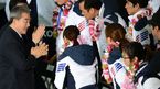 [OSEN=인천공항, 최규한 기자] 25일 인천국제공항을 통해 제22회 소치동계올림픽대회에 참가한 대한민국 선수단이 입국, 인천국제공항 1층 밀레니엄홀 야외무대에서 해단식을 가졌다. 김재열 선수단장이 김정행 대한체육회장에