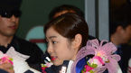 [OSEN=인천공항, 최규한 기자] 25일 인천국제공항을 통해 제22회 소치동계올림픽대회에 참가한 대한민국 선수단이 입국, 인천국제공항 1층 밀레니엄홀 야외무대에서 해단식을 가졌다. 김연아가 꽃목걸이를 매만지고 있다. 이날