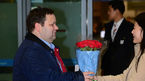 [OSEN=인천국제공항, 백승철 기자] 2일 오전 인천국제공항을 통해 영국에서 입국한 폴 포츠가 한 관계자로부터 꽃다발을 받고 있다. 폴 포츠는 자신의 스토리를 다룬 영화 '원 챈스' 홍보차 한국을 찾았다. / baik@osen.co.kr