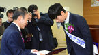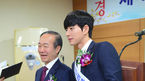 [OSEN=최규한 기자]배우 박해진이 3일 오전 서울 용산구 용산세무서에서 '제48회 납세자의 날' 기념 일일 명예 민원 봉사실장으로 나서 권영택 용산세무서장에게 위촉패를 전달받고 있다. 용산세무서는 신뢰감을 주는 외모와 반