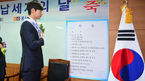 [OSEN=최규한 기자]배우 박해진이 3일 오전 서울 용산구 용산세무서에서 '제48회 납세자의 날' 기념 일일 명예 민원 봉사실장으로 나서 행사 중 국민의례를 하고 있다. 용산세무서는 신뢰감을 주는 외모와 반듯한 이미지의 박해진