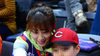 [OSEN=고양, 곽영래 기자] 4일 오후 고양 실내체육관에서 '2013-2014 KB국민카드 프로농구' 고양 오리온스와 안양 KGC의 경기가 열렸다. 시투를 위해 경기장을 찾은 조해리가 어린 학생과 기념촬영을 하고 있다. 추일승 감독이 이끄는