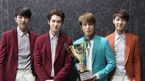 [OSEN=이혜린 기자]인기밴드 씨엔블루가 지난 5일 MBC뮤직 '쇼 챔피언'에서 1위를 차지, 컴백 후 첫 1위 트로피를 쥐었다. 씨엔블루는 이날 신곡 '캔트 스톱(Can't stop)'으로 1위를 차지하고,1위공약으로 내세웠던 사투리 버전 '캔트