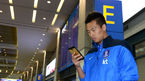 [OSEN=인천공항, 지형준 기자] 그리스와의 평가전을 마친 축구대표팀이 7일 오전 인천공항을 통해 입국했다. 김신욱이 휴대폰을 바라보며 인터뷰를 기다리고 있다. 홍명보 감독이 이끄는 축구국가대표팀은 6일 새벽 그리스 아테