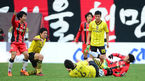[OSEN=서울월드컵경기장, 이대선 기자] 8일 오후 서울 상암동 서울월드컵경기장에서 '2014 현대오일뱅크 K리그 클래식' FC서울과 전남 드래곤즈의 경기가 열렸다. 전반 서울 고요한과 전남 이승희가 볼다툼 중 충돌하고 있다. 이날