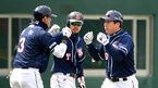 [OSEN=목동, 이대선 기자] 2014 프로야구 시범경기, 넥센 히어로즈와 두산 베어스의 경기가 8일 오후 서울 목동야구장에서 열렸다. 1회초 1사 1루에서 두산 김현수가 중월 투런 홈런을 치고 홈에서 칸투와 하이브를 하고 있다. 시즌