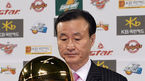 [OSEN=잠실학생체,박준형 기자] 10일 오전 서울 잠실학생체육관서 진행된 '2013~2014 KB국민카드 프로농구' 플레이오프 미디어데이에서 김진 감독이 트로피를 만지고 있다 플레이오프에 진출한 6개팀 감독과 선수 2명(모비스 양동근