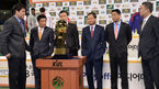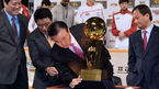 [OSEN=잠실학생체,박준형 기자] 10일 오전 서울 잠실학생체육관서 진행된 '2013~2014 KB국민카드 프로농구' 플레이오프 미디어데이에서 SK 문경은 감독이 우승 트로피를 만져보고 있다. 플레이오프에 진출한 6개팀 감독과 선수 2명(모