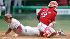 [OSEN=목동,박준형 기자] 11일 서울 목동구장에서 열린 '2014 프로야구 시범경기' 넥센 히어로즈와 KIA 타이거즈의 경기 8회말 1사 3루 넥센 유한준의 희생플라이때 3루 주자 임병욱이 홈태그업 시도해 득점을 올리고 있다. 대주자로