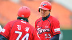 [OSEN=목동,박준형 기자] 11일 서울 목동구장에서 열린 '2014 프로야구 시범경기' 넥센 히어로즈와 KIA 타이거즈의 경기 5회초 1사 KIA 이대형이 안타를 날린후 김실 코치와 하이파이브를 하고 있다. 시즌 개막에 앞서 열리는 시범경