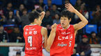 [OSEN=잠실학생체,박준형 기자] 13일 오후 서울 잠실학생체육관서 열린 2013-14 KB국민카드 프로농구 플레이오프 1차전 서울 SK와 고양 오리온스의 경기, 2쿼터 SK 주희정이 3점슛 성공후 김선형과 세레모니를 하고 있다. SK는 37승17패