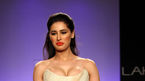 [OSEN=AFP 특약] 15일(현지시간) 인도 뭄바이에서 진행된 '라크메 패션위크'에서 인도 볼리우드 여배우 나르기스 파크리가 디자이너 Shehla Khan의 컬렉션을 선보이고 있다. 아시아의 주요 섬유수출국 인도는 섬유산업의 부가가치를