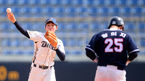 [OSEN=창원, 이대선 기자] 18일 오후 창원 마산야구장에서 열린 '2014 한국야쿠르트 세븐 프로야구' 시범경기 NC 다이노스와 두산 베어스의 경기, 2회초 1사 1루에서 두산 고영민의 병살타 때 NC 2루주자 박민우가 1루주자 양의지를