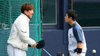 [OSEN=창원, 이대선 기자] 18일 오후 창원 마산야구장에서 열린 '2014 한국야쿠르트 세븐 프로야구' 시범경기 NC 다이노스와 두산 베어스의 경기에 앞서 NC 손시헌이 두산 김현수와 인사를 나누고 있다. 이번 마산 2연전은 이종욱과