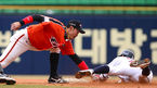 [OSEN=잠실, 백승철 기자] 20일 오후 서울 잠실구장에서 열린 '2014 프로야구 시범경기' 두산 베어스와 한화 이글스의 경기 7회말 무사 1루 고영민 타석, 1루주자 장민석이 도루에 실패하고 있다. 시즌 개막에 앞서 열리는 시범경기