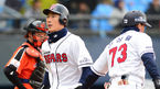 [OSEN=잠실, 백승철 기자] 20일 오후 서울 잠실구장에서 열린 '2014 프로야구 시범경기' 두산 베어스와 한화 이글스의 경기 5회말 무사 1루 고영민이 투런홈런을 치고 홈에서 전상렬 코치와 하이파이브를 하고 있다. 시즌 개막에 앞