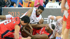 [OSEN=울산,박준형 기자] 23일 오후 울산시 동천실내체육관서 열린 '2013-2014 KB국민카드 프로농구' 4강 플레이오프 1차전 울산 모비스와 서울 SK의 경기 3쿼터 모비스 벤슨과 SK 헤인즈가 루즈볼을 다투고 있다. 정규리그 2위 모비스