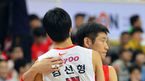 [OSEN=울산,박준형 기자] 23일 오후 울산시 동천실내체육관서 열린 '2013-2014 KB국민카드 프로농구' 4강 플레이오프 1차전 울산 모비스와 서울 SK의 경기 시작전 모비스 양동근과 SK 김선형이 포옹을 하고 있다. 정규리그 2위 모비스와