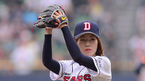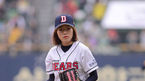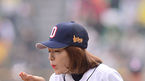 [OSEN=잠실,박준형 기자] 29일 오후 서울 잠실구장에서 열린 '2014 한국야쿠르트 세븐 프로야구' 두산 베어스와 LG 트윈스의 경기에 앞서 스피드스케이팅 이상화가 시구를 하고 있다. 두산은 개막 경기에서 니퍼트는 선발투수로 내