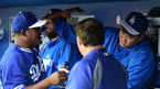 [OSEN=로스앤젤레스, 지형준 기자] 29일(이하 한국시간) 미국 캘리포니아주 로스앤젤레스 다저스타디움에서 LA 다저스와 LA 에인절스의 시범경기가 열렸다. 경기에 앞서 유리베가 더그아웃에서 류현진 버블헤드를 바라보며 인상