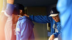 [OSEN=로스앤젤레스, 지형준 기자] 29일(이하 한국시간) 미국 캘리포니아주 로스앤젤레스 다저스타디움에서 LA 다저스와 LA 에인절스의 시범경기가 열렸다. 경기에 앞서 류현진이 오늘 선수단에 합류한 멧 켐프의 목을 마사지하고