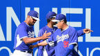 [OSEN=로스앤젤레스, 지형준 기자] 29일(이하 한국시간) 미국 캘리포니아주 로스앤젤레스 다저스타디움에서 LA 다저스와 LA 에인절스의 시범경기가 열렸다. 경기에 앞서 다저스 켄리 잰슨이 외야에서 러닝중인 류현진의 배를 만지