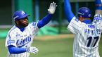 [OSEN=대구, 민경훈 기자] 30일 오후 대구 시민구장에서 열린 '2014 한국야쿠르트 세븐 프로야구' 삼성 라이온즈와 KIA 타이거즈의 경기, 1회말 무사 주자 1루 삼성 나바로가 좌월 투런 홈런을 날린 후 홈에서 정형식과 기쁨을 나누고