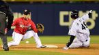 [OSEN=잠실, 민경훈 기자] 1일 오후 잠실구장서 열린 '2014 한국야쿠르트 세븐 프로야구' LG 트윈스와 SK 와이번스의 홈 개막전, 6회말 무사 주자 1루 LG 김용의 타석에서 1루 주자 문선재가 2루 도루를 시도, 포수 실책으로 볼이 빠지