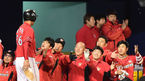 [OSEN=잠실, 민경훈 기자] 1일 오후 잠실구장서 열린 '2014 한국야쿠르트 세븐 프로야구' LG 트윈스와 SK 와이번스의 홈 개막전, 3회초 무사 주자 2,3루 SK 나주환의 중견수 희생플라이때 홈을 밟은 박정권이 덕아웃에서 동료들과 하