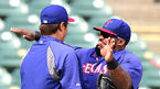[OSEN=알링턴, 지형준 기자] 2일(이하 한국시간) 미국 텍사스주 알링턴 글로브 라이프 파크에서 텍사스 레인저스와 필라델피아 필리스의 경기가 열렸다. 경기에 앞서 텍사스 추신수와 프린스 필더가 장난을 치고 있다. 필더는 목