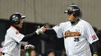 [OSEN=인천, 이대선 기자] 5일 오후 인천 문학야구장에서 '2014 한국야쿠르트 세븐 프로야구' SK 와이번스와 한화 이글스의 경기가 열렸다. 6회말 1사 만루에서 SK 나주환이 좌전 적시타를 백재호 코치와 하이파이브를 하고 있다. SK