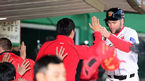 [OSEN=인천, 이대선 기자] 5일 오후 인천 문학야구장에서 '2014 한국야쿠르트 세븐 프로야구' SK 와이번스와 한화 이글스의 경기가 열렸다. 6회말 1사 만루 SK 나주환 타석 때 패스트볼로 홈을 밟은 3루주자 스캇이 더그아웃에서 동료
