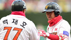 [OSEN=인천, 이대선 기자] 5일 오후 인천 문학야구장에서 '2014 한국야쿠르트 세븐 프로야구' SK 와이번스와 한화 이글스의 경기가 열렸다. 1회말 1사 3루에서 SK 최정이 좌중간을 가르는 적시타를 치고 백재호 코치와 하이파이브를