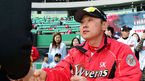 [OSEN=인천, 정송이 기자] 5일 오후 인천 문학야구장에서 '2014 한국야쿠르트 세븐 프로야구' SK 와이번스와 한화 이글스의 경기가 열렸다. 경기에 앞서, 박경완 SK 2군 감독이 팬과 악수를 나누고 있다. SK는 지난 4일 문학구장에서