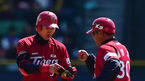 [OSEN=잠실 ,백승철 기자] 6일 오후 서울 잠실구장에서 열린 '2014 한국야쿠르트 세븐 프로야구' 두산 베어스와 KIA 타이거즈의 경기 1회초 선두타자 이대형이 좌익수 왼쪽 2루타를 치고 김창희 코치와 하이파이브를 하고 있다. KIA는