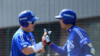 [OSEN=울산, 민경훈 기자] 6일 오후 울산 문수야구장에서 열린 '2014 한국야쿠르트 세븐 프로야구' 롯데 자이언츠와 삼성 라이온즈의 경기, 1회초 1사 주자 2,3루 삼성 정형식의 중견수 희생플라이때 홈을 밟은 최형우가 덕아웃에서
