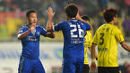 [OSEN=수원, 이대선 기자] 9일 오후 수원월드컵경기장에서 '현대오일뱅크 K리그 클래식 2014' 수원 삼성과 전남 드래곤즈의 경기가 열렸다. 후반 수원 염기훈의 선제골 때 정대세가 환호하고 있다. 6라운드까지 3승 2무 1패(승점 11점