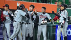 [OSEN=사직,박준형 기자] 10일 오후 부산 사직구장에서 열린 '2014 한국야쿠르트 세븐 프로야구' 롯데 자이언츠와 LG 트윈스의 경기,9회초 LG 선두타자 조쉬벨이 동점 솔로홈런을 날리고 동료들의 축하를 받고 있다. 롯데 선발투수