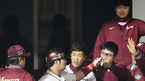 [OSEN=목동, 민경훈 기자] 10일 목동 야구장에서 벌어진 2014 한국프로야구 넥센 히어로즈와 KIA 타이거즈의 경기, 8회말 1사 주자 없는 상황에서 넥센 박병호가 중월 솔로 홈런을 날린 후 덕아웃에서 염경엽 감독과 하이파이브를