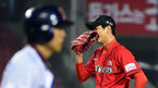 [OSEN=잠실, 곽영래 기자] 10일 오후 서울 잠실야구장에서 열린 '2014 한국야쿠르트 세븐 프로야구' 두산 베어스와 SK 와이번스의 경기, 6회말 2사 1,2루 SK 김광현이 두산 정수빈을 볼넷으로 1루까지 내보낸 뒤 씁쓸한 미소를 짓고 있