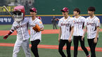 [OSEN=목동, 민경훈 기자] 10일 목동 야구장에서 벌어진 2014 한국프로야구 넥센 히어로즈와 KIA 타이거즈의 경기, 경기 전 시구와 시타, 애국가를 부른 빅스가 턱돌이와 함께 퇴장하고 있다. 이 날 경기에서 넥센과 KIA는 밴헤켄과