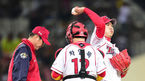 [OSEN=광주, 이대선 기자] 11일 오후 광주KIA챔피언스필드에서 '2014 한국야쿠르트 세븐 프로야구' KIA 타이거즈와 롯데 자이언츠의 경기가 열렸다. 3회초 2사 만루에서 롯데 정훈 타석때 KIA 송은범과 교체된 박성호가 힘차게 공을