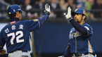 [OSEN=잠실 ,백승철 기자] 12일 오후 서울 잠실구장에서 열린 '2014 한국야쿠르트 세븐 프로야구' LG 트윈스와 NC 다이노스의 경기 7회초 2사 테임즈가 솔로포를 치고 홈에서 전준호 코치와 하이파이브를 하고 있다. NC는 전날 열린 LG