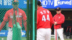 [OSEN=대구,박준형 기자] 12일 오후 대구구장에서 열린 '2014 한국야쿠르트 세븐 프로야구' 삼성 라이온스와 SK 와이번스의 경기에 앞서 SK 이만수 감독이 선수들의 훈련을 지켜보고 있다 삼성 라이온즈 좌완 기대주 백정현이 데뷔