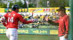 [OSEN=대구,박준형 기자] 12일 오후 대구구장에서 열린 '2014 한국야쿠르트 세븐 프로야구' 삼성 라이온스와 SK 와이번스의 경기,8회초 무사 만루 SK 최정이 만루 홈런을 날리고 이만수 감독의 축하를 받고 있다, 삼성 라이온즈 투수