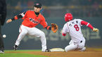 [OSEN=광주, 곽영래 기자] 15일 오후 광주-기아 챔피언스 필드에서 '2014 한국야쿠르트 세븐 프로야구' KIA 타이거즈와 한화 이글스의 경기가 열렸다. 8회말 2사 1루 KIA 안치홍이 2루 도루를 성공하고 있다. KIA 한승혁이 한화를 상대